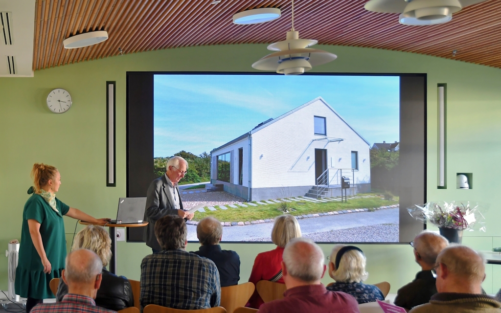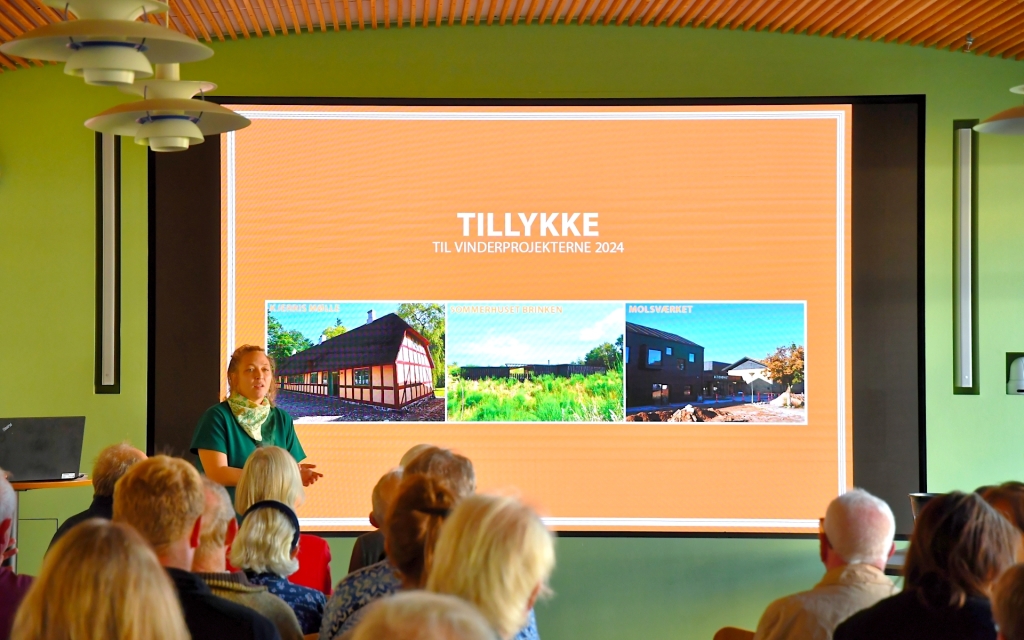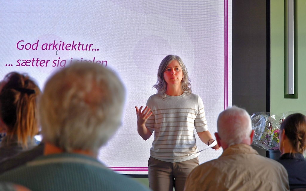 Luise Pape Ryhdal, direktør for Udvikling og Kultur, gav et tankevækkende indlæg om arkitekturens betydning, og herefter blev de nominerede projekter præsenteret med efterfølgende præmieoverrækkelse til de 3 vinderne af BLIS og Syddjurs Kommunes Arkitektur- og Bevaringspris 2024.